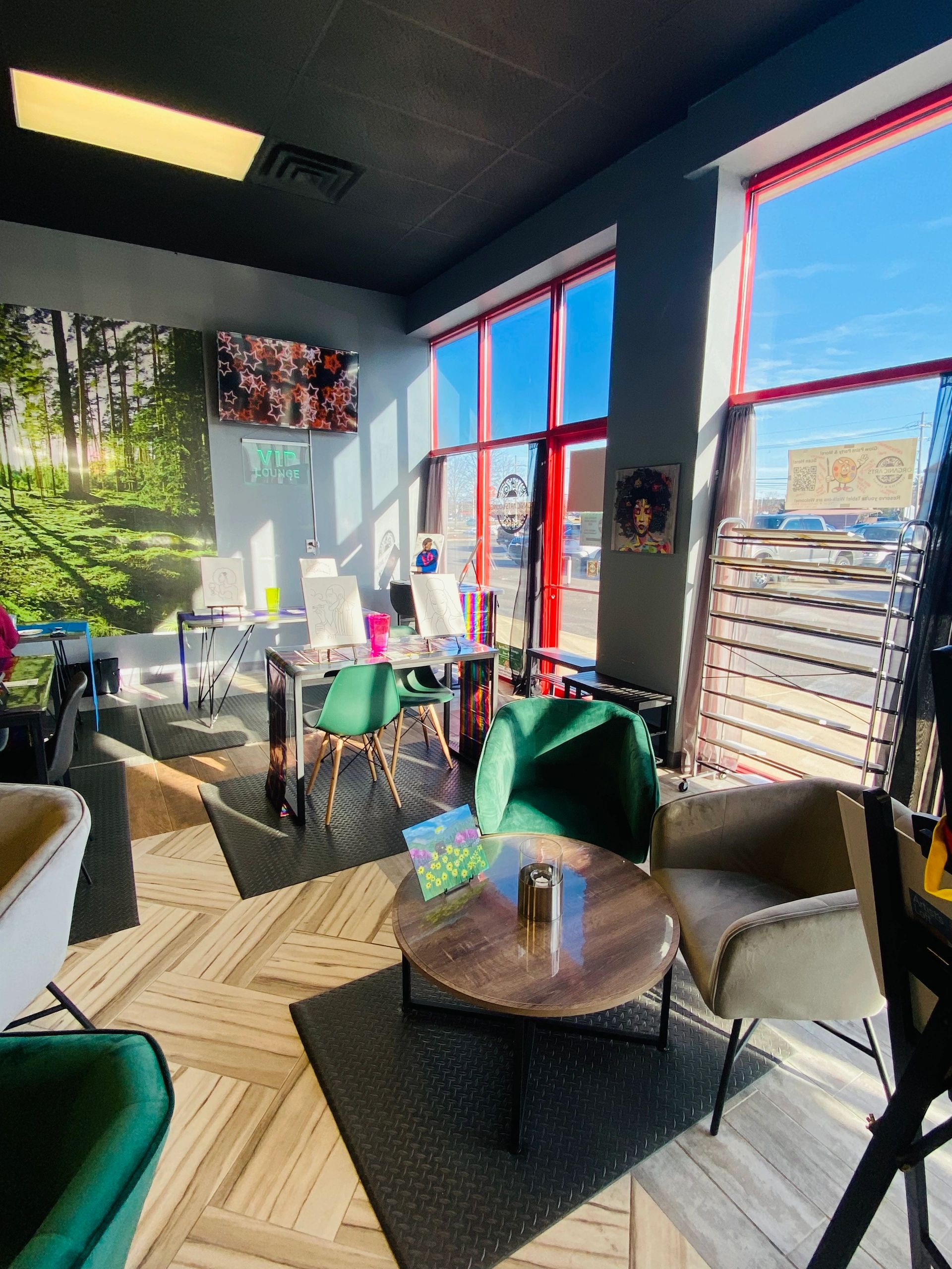 Our Art Studio & Lounge is joined for double the fun. Here's A Great place to Paint, Sip & Eat! Offering an Enjoyable Atmosphere for your Family, Friends & yourself. There's so many things happening here and we wouldn't want for you to miss out.